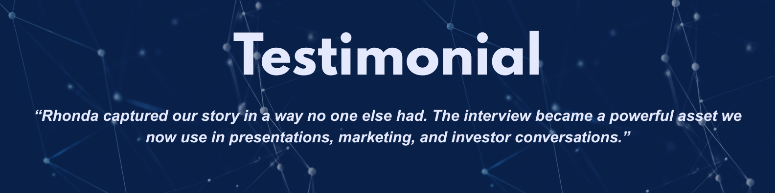 Clients receive professionally produced content, strategic message development, and distribution opportunities that elevate their personal and professional brands. Interviews are designed to highlight expertise, differentiate stories, and create reusable media assets for websites, social platforms, and investor outreach.